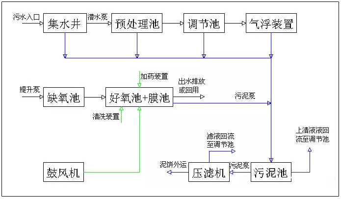 膜法處理石化廢水處理工藝流程圖